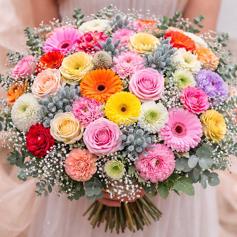 This SUPER BUNCH contains an assortment of various mixed flowers in season, decorated with gypsophila. The best bouquet for that very special person.